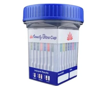 These cups are used for on-site urine drug screening. They typically test for a panel of commonly abused drugs, such as: